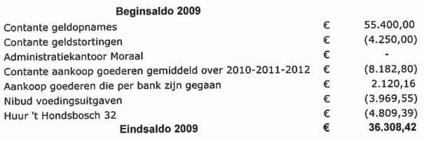 12) Op basis van de bekende bankgegevens over 2009 is de kasopstelling voor 2009 gereconstrueerd. Omdat in maart van dat jaar een krediet is opgenomen, is – ten nadele van [betrokkene] – als uitgangspunt genomen dat het beginsaldo op 1 januari 2009 nihil was.
