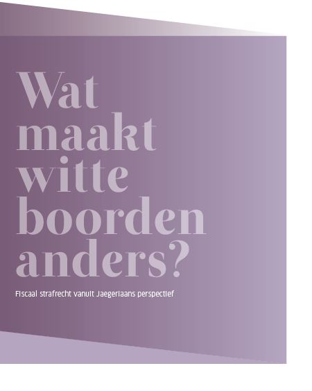 Voor je ligt het boekje over fiscaal strafrecht. Vanuit ons Jaegeriaans perspectief. Nou ja, boekje, het is best een stevige pil geworden. Na ons lustrumboek van twee jaar geleden een tweede loot aan de stam. Met dezelfde ‘look’ en ‘feel’ en wederom in ‘jij’-vorm. Dat past ons beter. Het fiscaal strafrecht is al koud, afstandelijk en formeel genoeg. Daar hoeven wij geen extra bijdrage aan te leveren. Waarmee ik zeker niet wil suggereren dat door deze vorm het deelgebied van het fiscaal strafrecht prettiger wordt als je er persoonlijk mee in confrontatie komt.